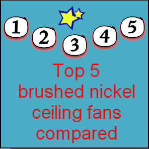 The top 5 ceiling fans placed side by side where you can easily compare one brushed nickel fan with another.